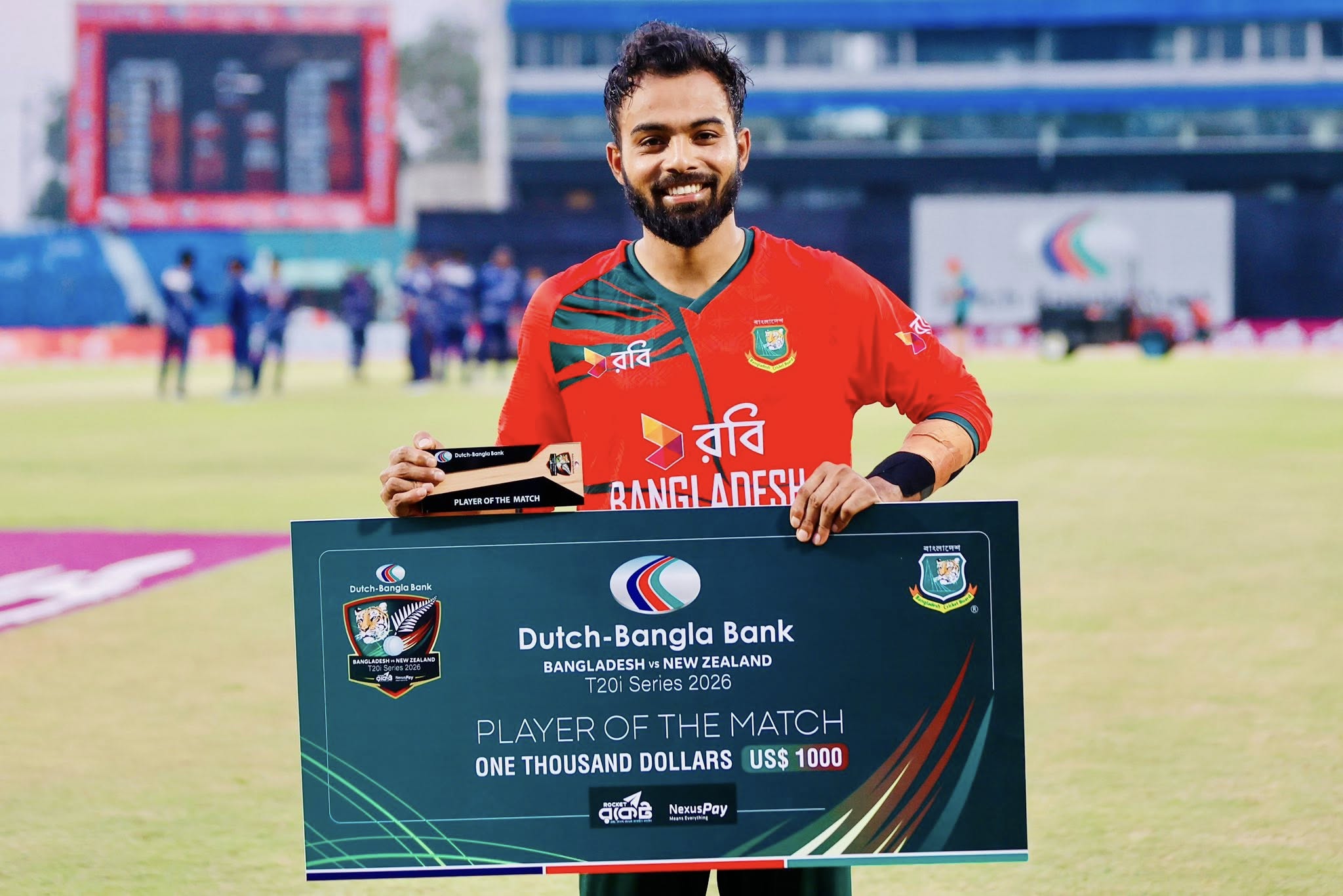 চট্টগ্রামে চাপের রান তাড়াকে সহজ জয়ের গল্পে পরিণত করল বাংলাদেশ। নিউজিল্যান্ডের ১৮২ রানের লক্ষ্য ১৮ ওভারেই টপকে ৬ উইকেটে জয় তুলে নেয় লিটন দাসের দল। শুরুটা কিছুটা দোলাচালে থাকলেও শেষটা লিখলেন একাই তাওহিদ হৃদয়, যিনি খেললেন ম্যাচ জেতানো এক নিয়ন্ত্রিত ইনিংস।