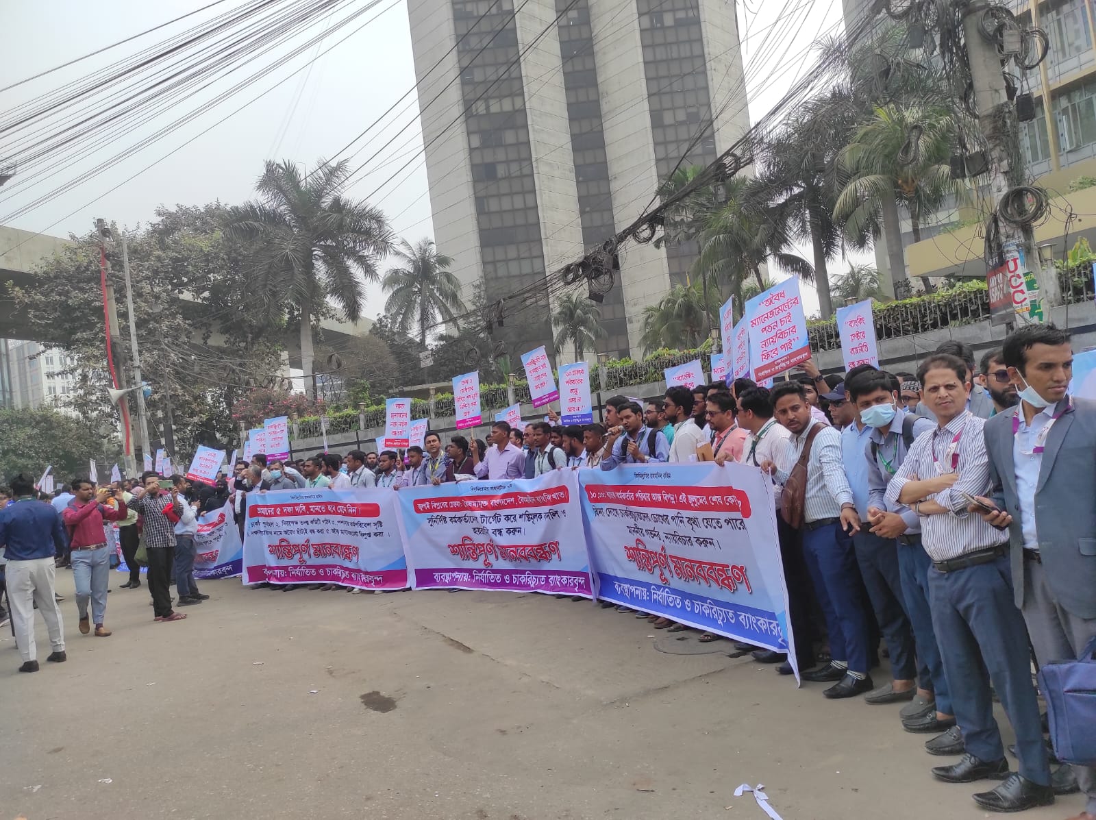 এস আলমের নিয়োগকৃত ‘অবৈধ অফিসারদের’ মানববন্ধন কর্মসূচি
