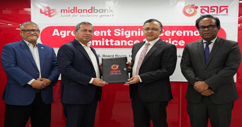 রেমিট্যান্স সেবা সহজ করতে নগদ ও মিডল্যান্ড ব্যাংকের চুক্তি