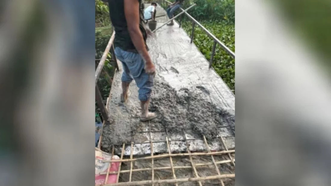 বরিশালে রডের বদলে বাঁশের কঞ্চি দিয়ে আয়রন ব্রিজ ঢালাই