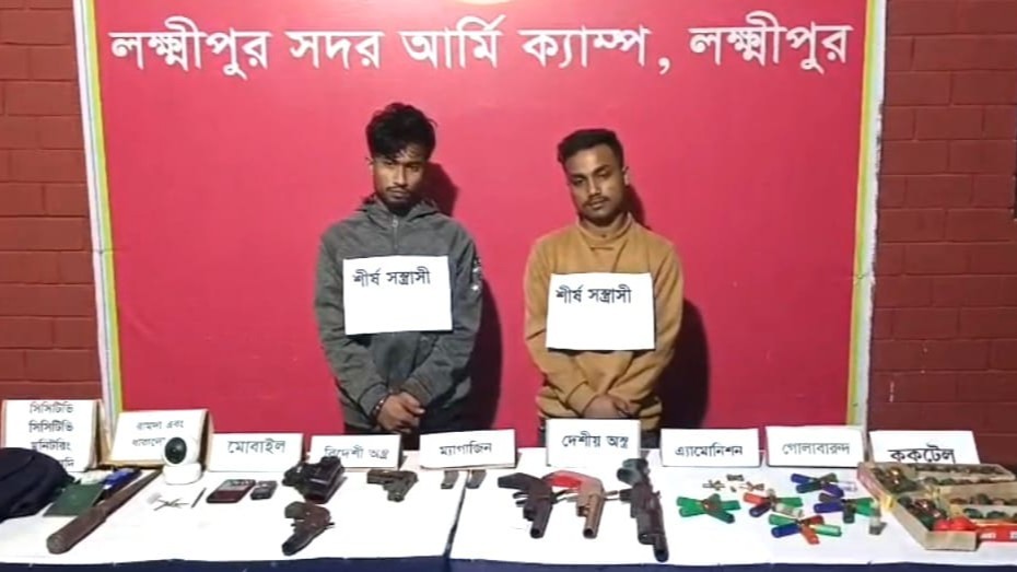লক্ষ্মীপুরে যৌথবাহিনীর অভিযানে বিপুল পরিমাণ অস্ত্রসহ দুই সন্ত্রাসী গ্রেপ্তার