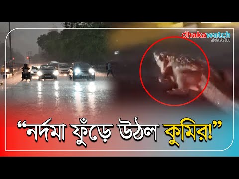 বর্ষার রাতে নর্দমা ফুঁড়ে উঠে এলো ভয়াল অতিথি—জোড়া কুমির!