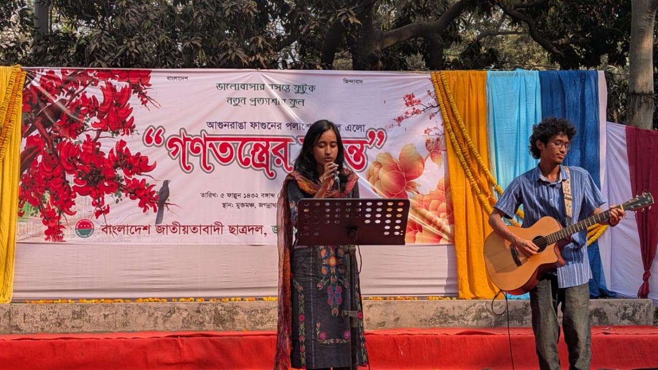 ফাল্গুনের আনন্দকে ভাগাভাগি করে নিতে 'আগুনরাঙা ফাগুনে আবারও উচ্চারিত হোক গণতন্ত্রের শপথ' এই প্রতিপাদ্যকে সামনে রেখে জগন্নাথ বিশ্ববিদ্যালয়ে (জবি) বাংলাদেশ জাতীয়তাবাদী ছাত্রদলের উদ্যোগে 'গণতন্ত্রের বসন্ত' শীর্ষক সাংস্কৃতিক উৎসব সম্পন্ন হয়েছে।