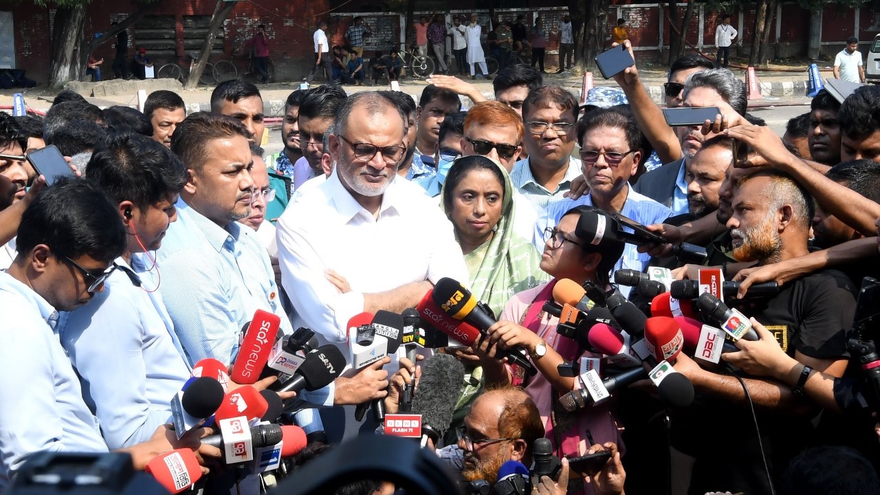 বিজিএমইএ প্রতিনিধিদল ঘটনাস্থল পরিদর্শন শেষে কার্গো ভিলেজের ৮ নম্বর গেটের সামনে উপস্থিত সাংবাদিকদের পরিদর্শন বিষয়ে ব্রিফিং করেন।