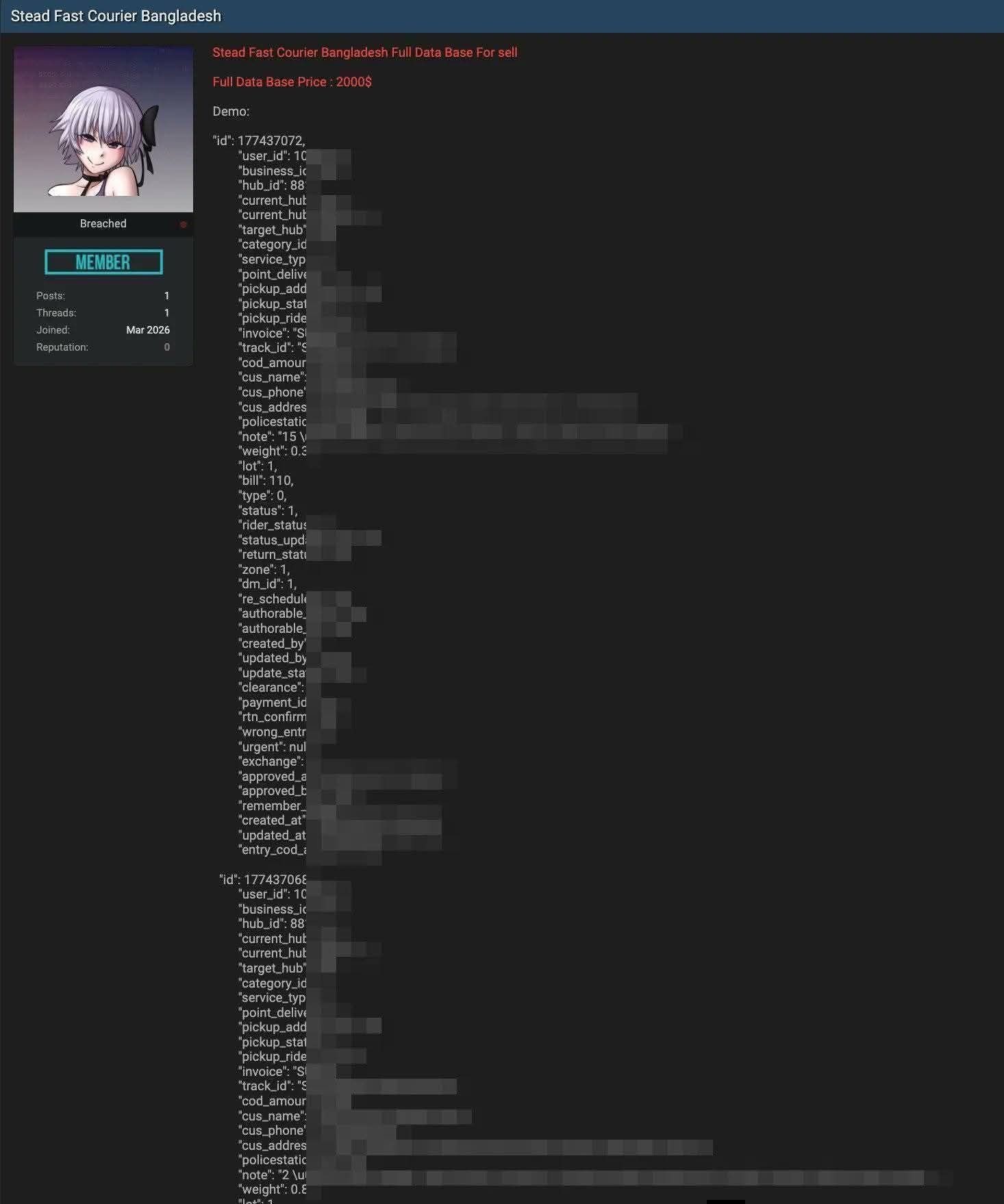 'স্টেডফাস্ট কুরিয়ারের গ্রাহকের তথ্য ফাঁস, ডার্কওয়েবে বিক্রি'