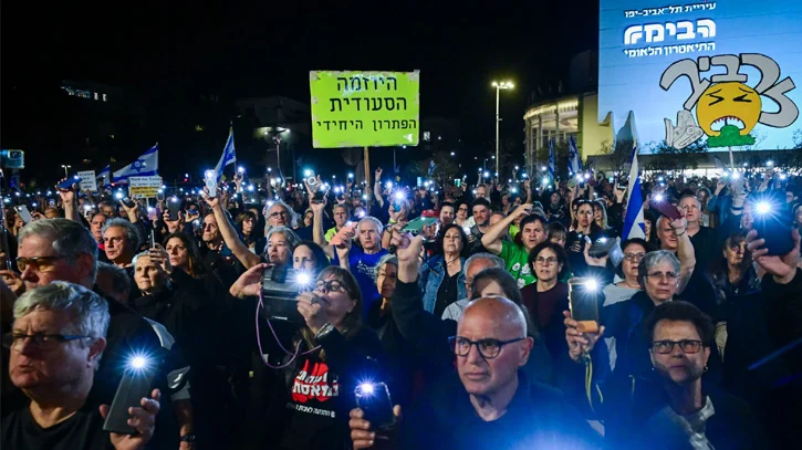 শনিবার (১৮ এপ্রিল) রাতে তেল আবিবে এই বিশাল প্রতিবাদ কর্মসূচি পালিত হয় বলে জানিয়েছে বার্তা সংস্থা এএফপি।