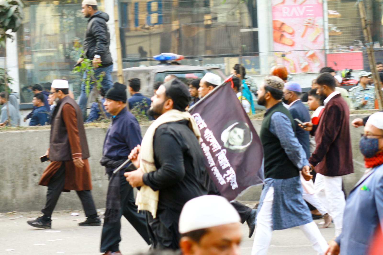 শোকের পোস্টার হাতে নিয়ে সংসদ ভবনের দক্ষিণ প্লাজা অভিমুখে