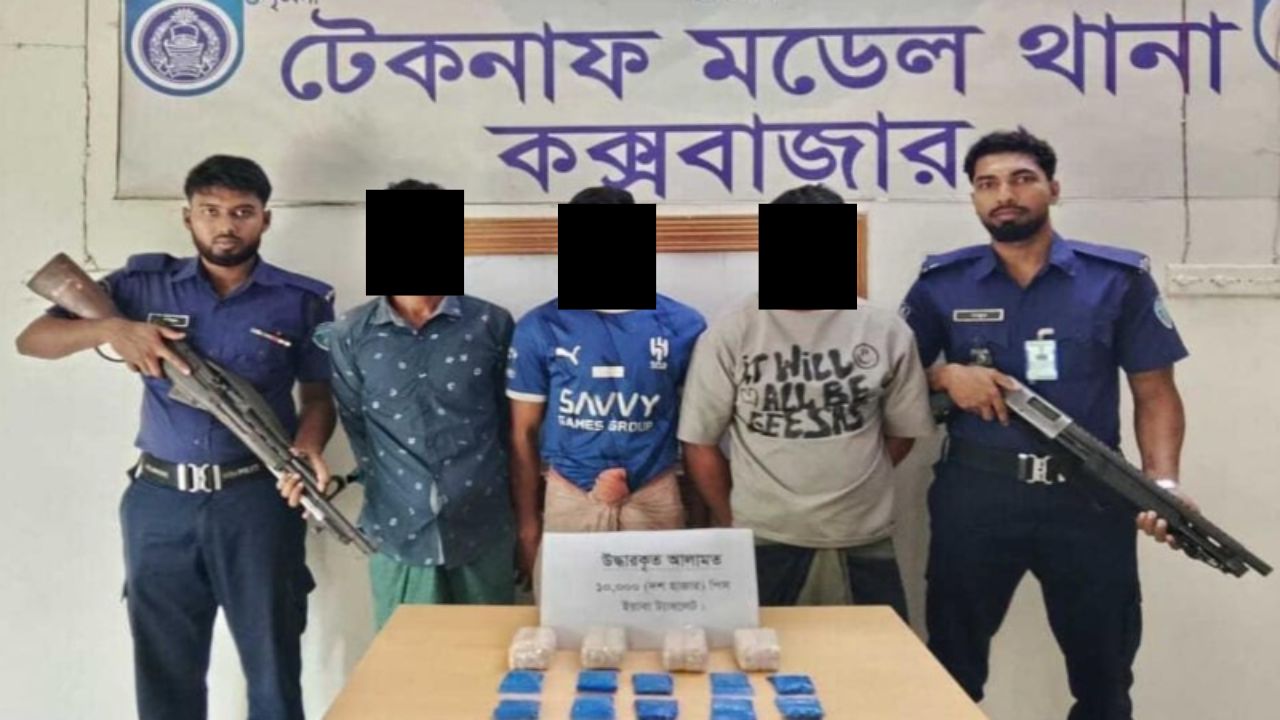 টেকনাফে রোহিঙ্গাসহ ৩ মাদক কারবারি আটক, ১০ হাজার পিস ইয়াবা উদ্ধার