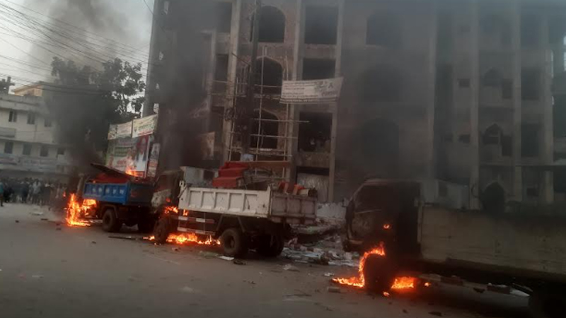 ভোলা পৌরসভার তিনটি গাড়ি জ্বালিয়ে দিল অবৈধ দোকানিরা, আহত ১৫