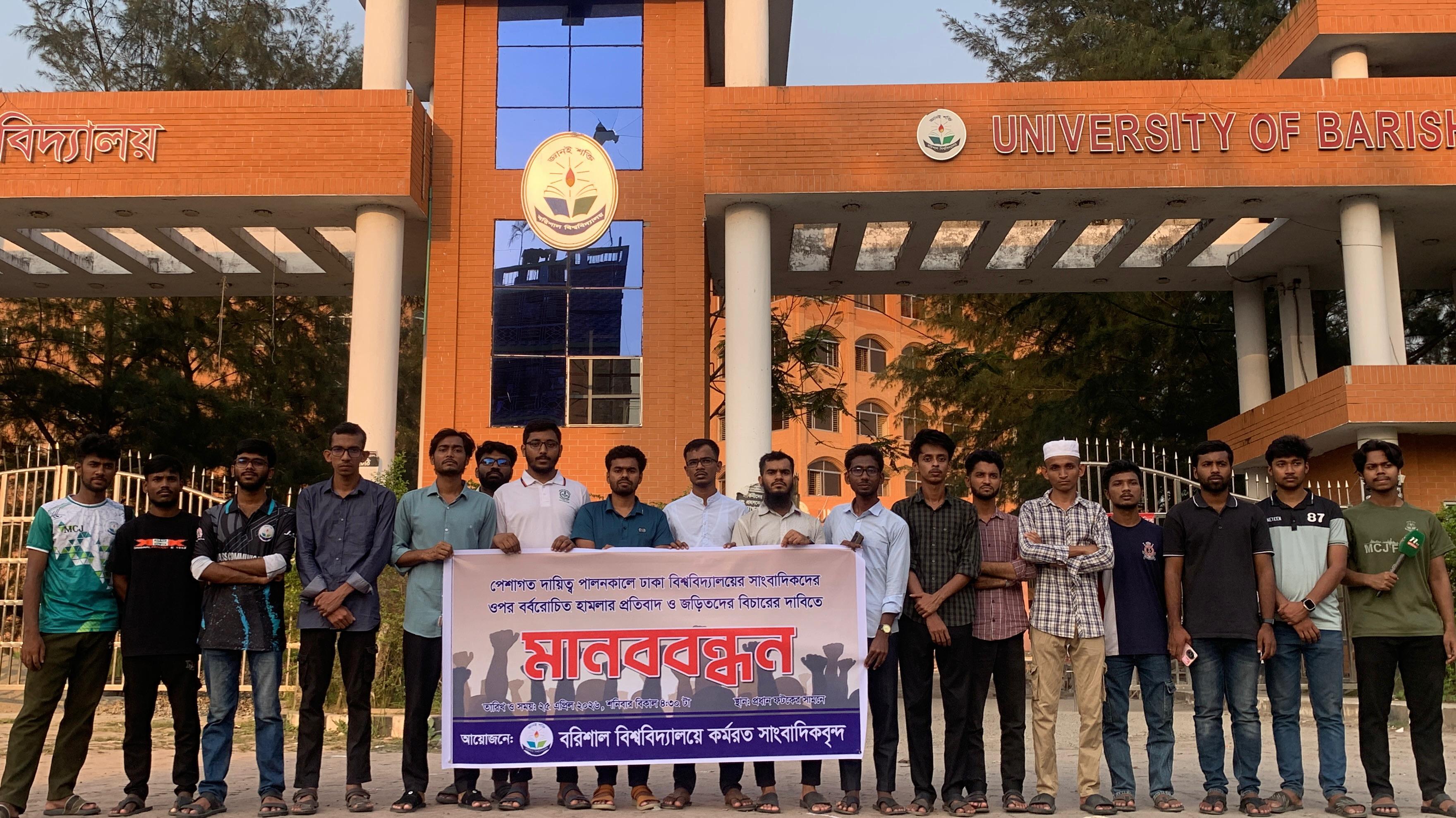 ঢাবিতে সাংবাদিকদের ওপর ছাত্রদলের হামলার প্রতিবাদে ববি সাংবাদিকদের মানববন্ধন