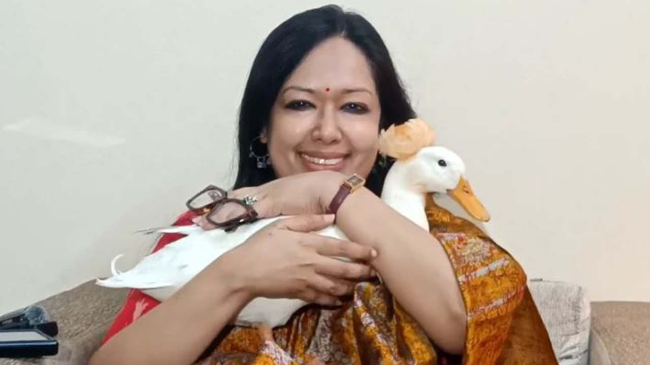 হাঁস কোলে নিয়ে সংবাদ সম্মেলন রুমিন ফারহানার