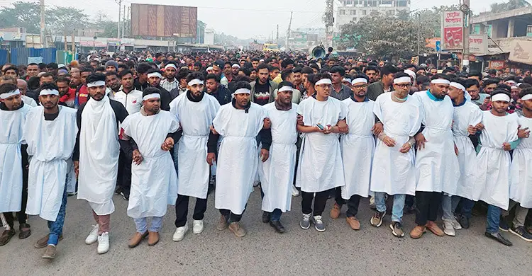 বিএনপি জোট প্রার্থী রাশেদ খানকে অবাঞ্চিত ঘোষণা করে কাফন মিছিল