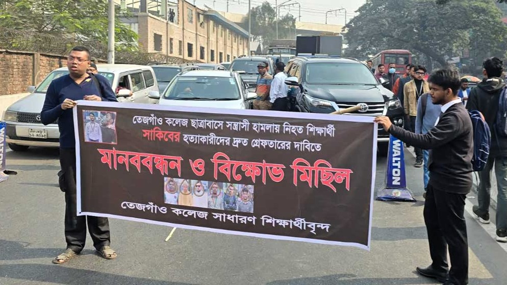 সাকিবুল হত্যার বিচার দাবিতে ফের রাস্তায় তেজগাঁও কলেজের শিক্ষার্থীরা