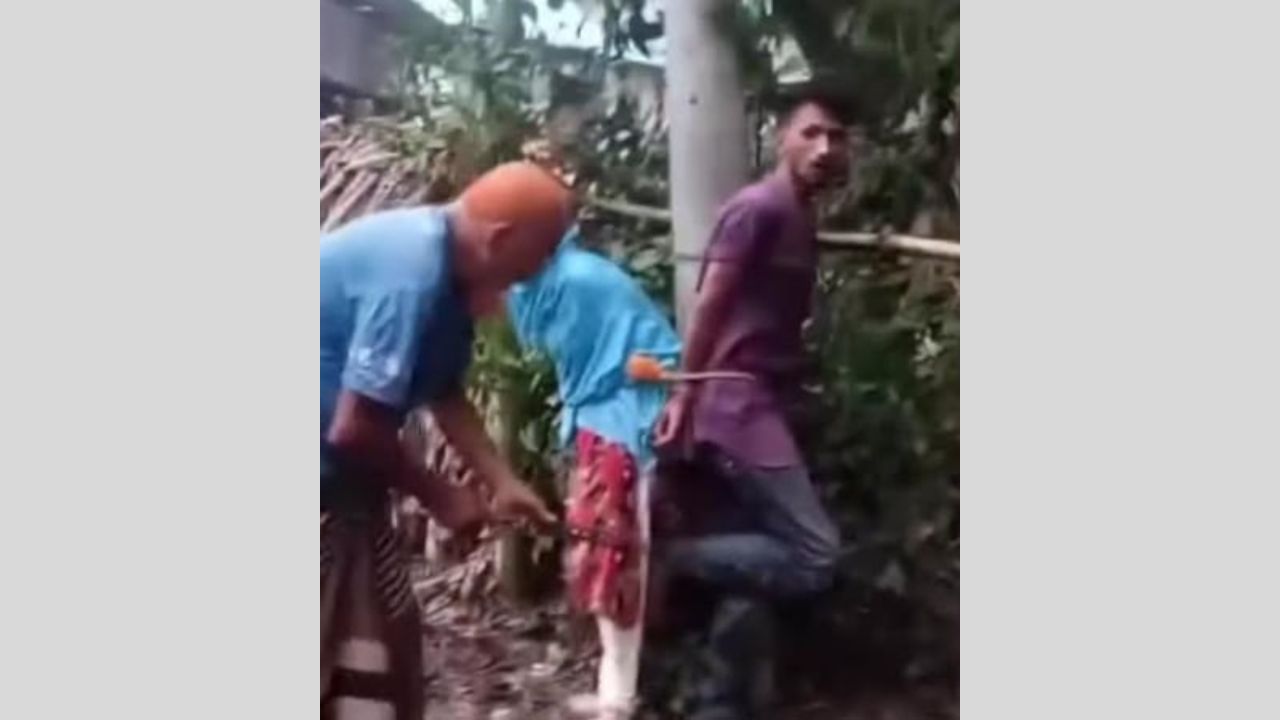 কাপড় চুরির অপবাদে যুবককে গাছে বেঁধে নির্যাতন, ভিডিও ভাইরাল