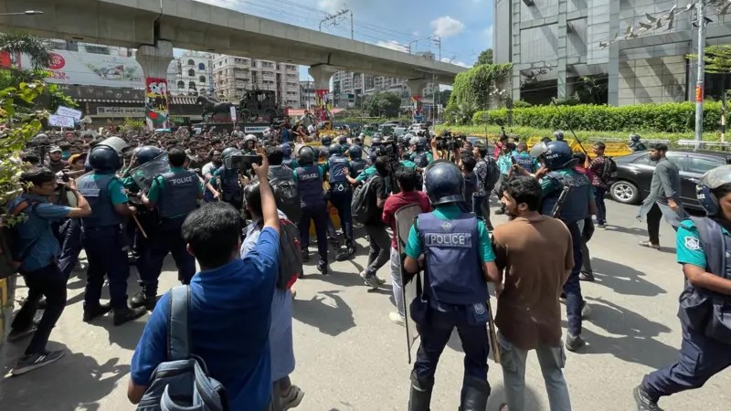 প্রধান উপদেষ্টার বাসভবনের দিকে এগোনোর চেষ্টা, পুলিশের লাঠিচার্জ, টিয়ারসেল নিক্ষেপ