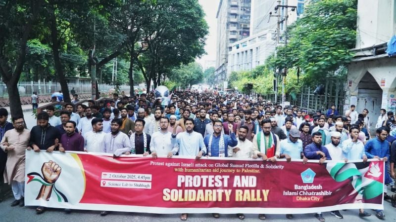 গ্লোবাল সুমুদ ফ্লোটিলার নৌযানে হামলার প্রতিবাদে রাজধানীতে মিছিল