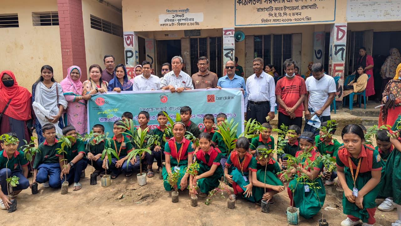 রাঙ্গামাটিতে শিক্ষার্থীদের মাঝে গাছের চারা বিতরণ ও বৃক্ষরোপণ