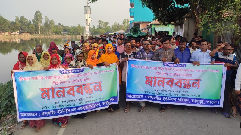 ভাঙ্গুড়ায় ইউপির চেয়ারম্যানের বিরুদ্ধে অপপ্রচারের প্রতিবাদে এলাকাবাসীর মানববন্ধন