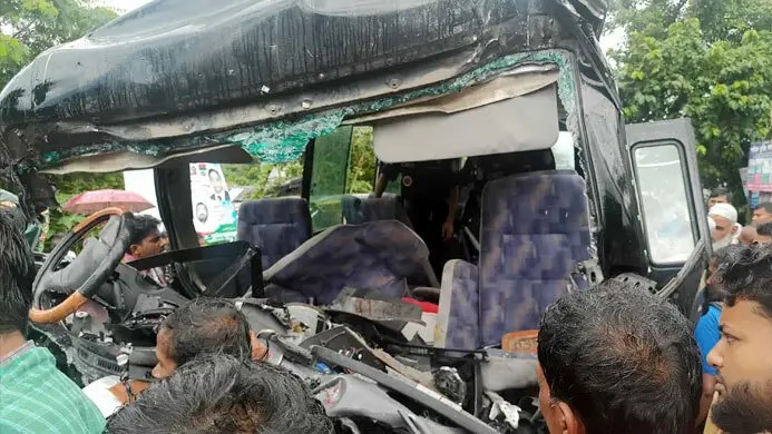 র্যাবের পিকনিকের গাড়ির সঙ্গে বাসের মুখোমুখি সংঘর্ষে শিশু নিহত, আহত ২২
