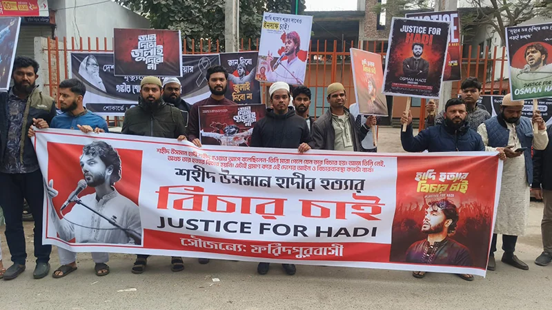 ফরিদপুরে ওসমান হাদি হত্যার বিচার দাবিতে মানববন্ধন ও বিক্ষোভ