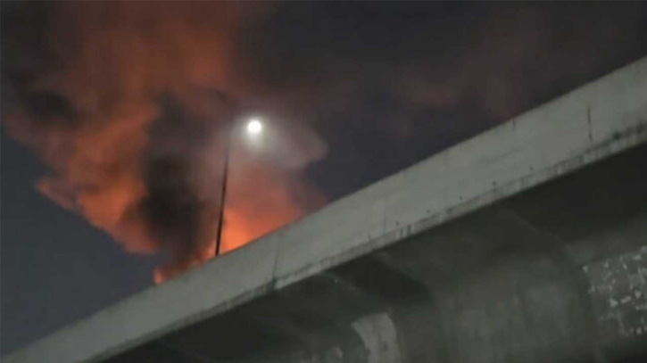 শাহজালাল বিমানবন্দরের সামনে ফ্লাইওভারের উপরে মোটরসাইকেলে আগুন