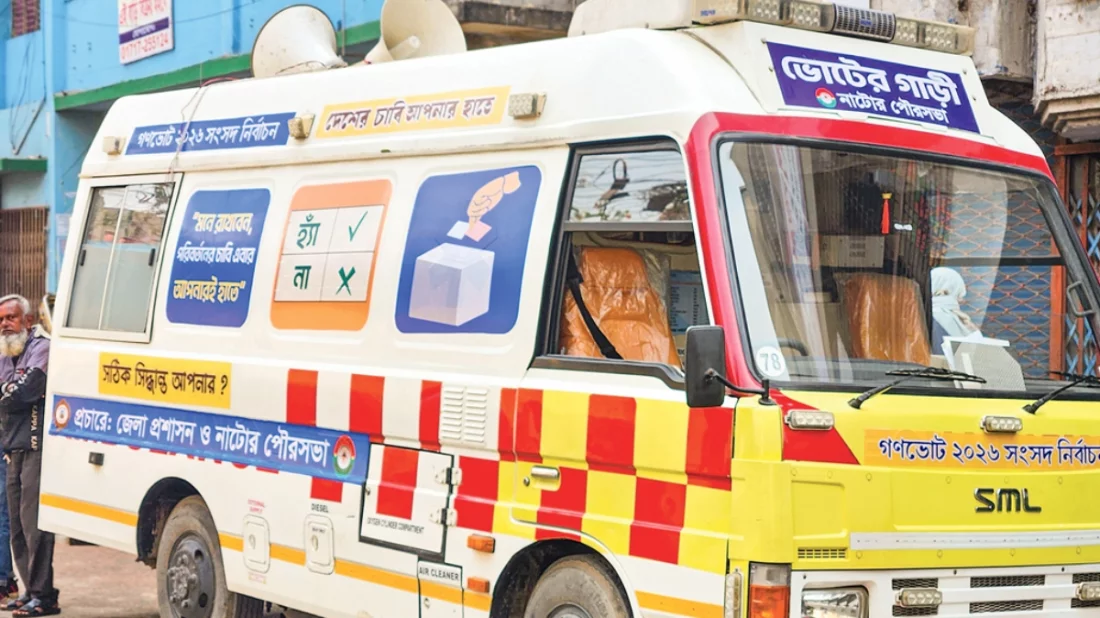 নাটোরে আইসিইউ অ্যাম্বুলেন্সে ভোটের প্রচার