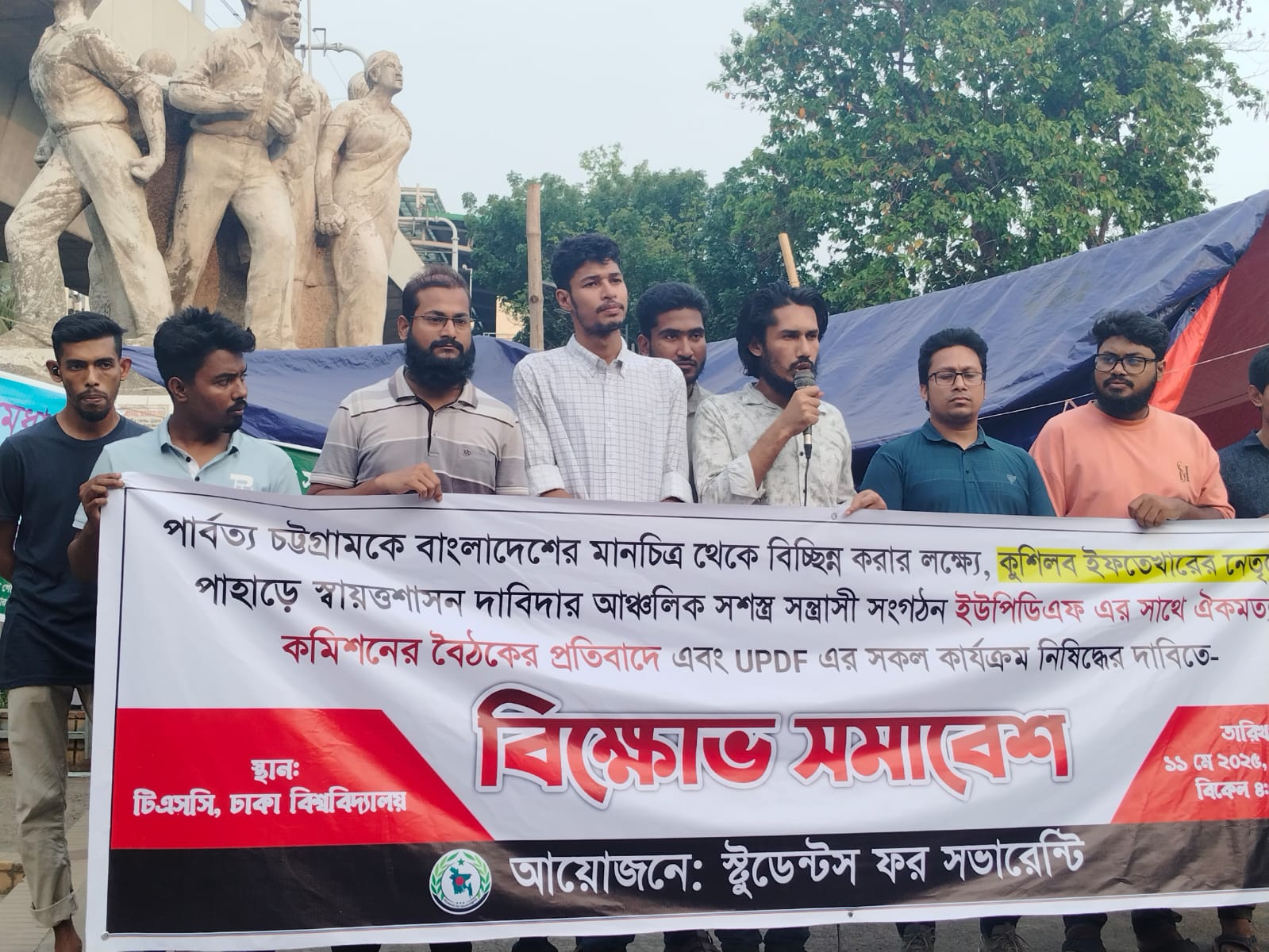 পাহাড়ের সন্ত্রাসী সংগঠন ইউপিডিএফ নিষিদ্ধসহ ৫ দফা দাবীতে স্টুডেন্টস ফর সভারেন্টির বিক্ষোভ
