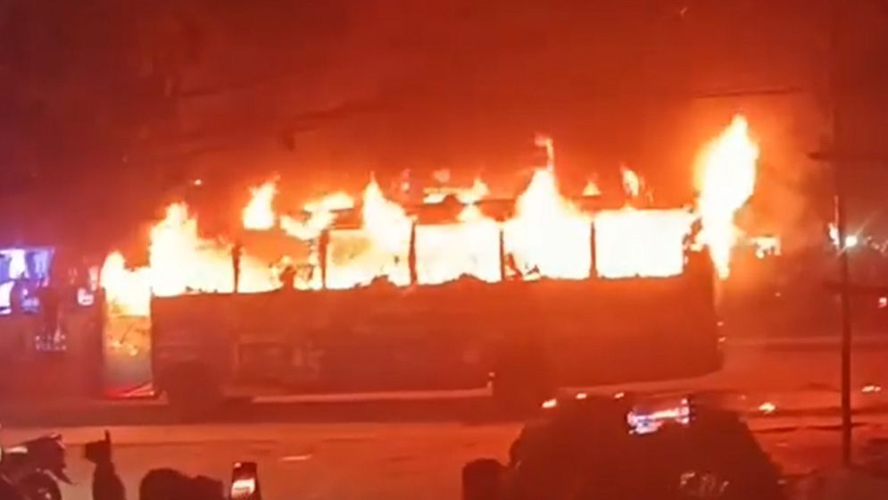বাড্ডায় চলন্ত বাসে আগুন